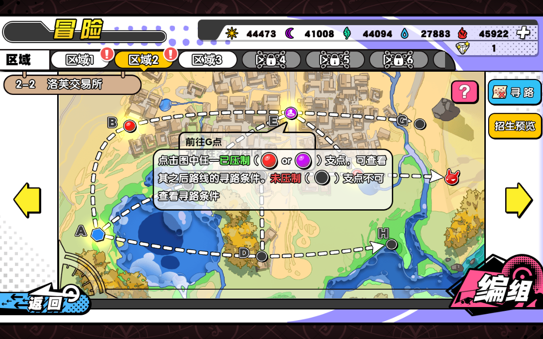 (2)关卡路线:(2—2)章可选择路线非常的多,结合任务条件和据点要求进行选择。