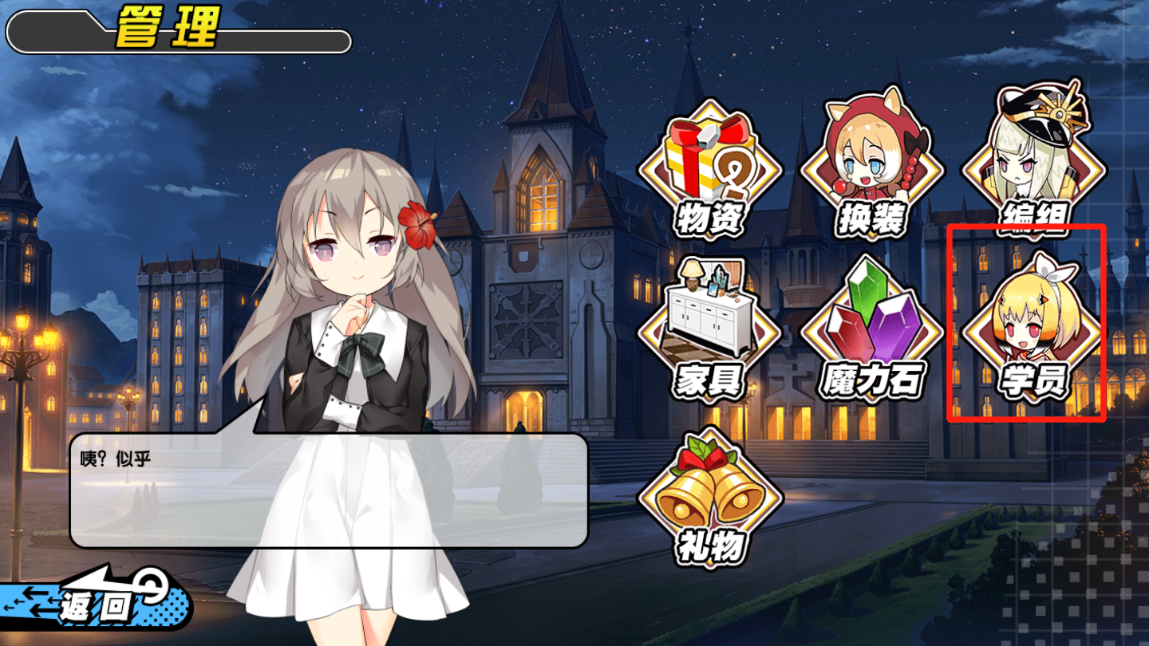 (2)选择方式2:将游戏会有主页面,然后点击主页面的“管理”进入游戏管理界面。继续点击“学员”功能可以查看玩家当前的角色,在学员中选好一个需要当助理的角色然后进入学员管理,点击屏幕左下角的“信封”就可以把角色设定为校长助理了。