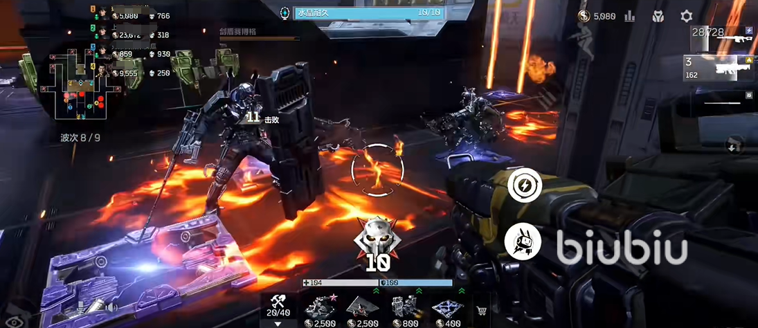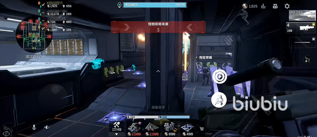 玩家与三名队友共同进入专用地图,进行以策略布局和团队协作为核心的PVE任务。进入地图后,玩家通过在地图上合理布置各种防御设施,包括喷火器、炮台、离子发射器、自修式磁爆塔等各种武器。我们可以先观察怪物的行进路线,然后利用“堵门”战术在怪物出入口附近部署防御塔和陷阱,如自修设备和离子发射器,这样能在怪物刚出场时就迅速阻挡并消耗它们的血量。