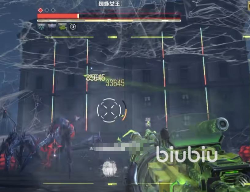 然后是第二阶段,这个阶段是最容易团灭的,在半血以前蜘蛛女王的攻击手段依旧单一,使用武器对准头部狂射就可以了,到达半血阶段,蜘蛛女王会腾空,这时候还会有大量的蛛丝包括自己,这个阶段无法受到伤害,而且还会对四周发射蛛网以及召唤小蜘蛛。