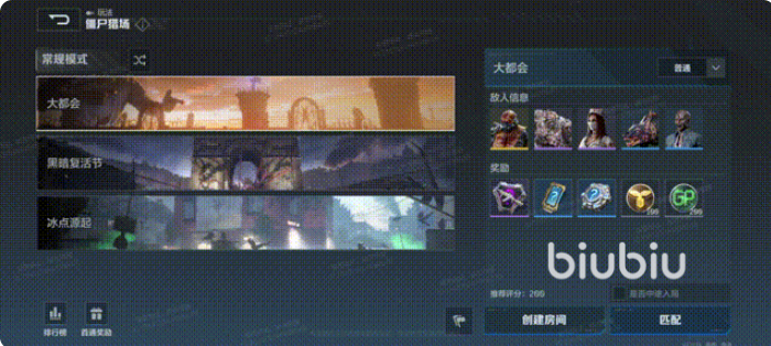 ”僵尸猎场”玩法,目前推出了“大都会”和“黑暗复活节”2张经典的地图,大都会当中,可以多人小队展开,抵御尸潮,摧毁病原体,安装C4炸弹守点等,最终还能挑战机制复杂的大型BOSS,每个大地图被分为多个线性关卡,要灵活的应对不同的丧尸类型,和各种地形机制。