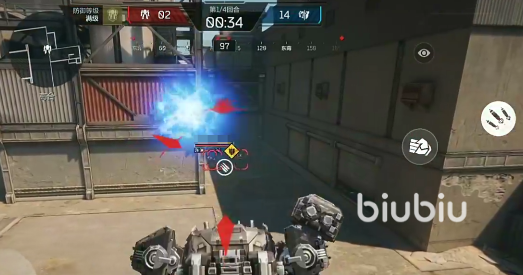 实际操作中,要注意的是韧性条的积累机制。机甲全身共有三处弱点,分别是左右侧武器和动力装置。当这些部位被敌人攻击时,韧性条会快速积累,一旦达到阈值就会进入瘫痪状态,彻底失去行动力。所以必须时刻注意保护弱点,避免被敌人集中火力输出。对敌人攻击方向的判断同样重要,屏幕上的红色箭头提示能够帮助我们快速调整视角,减少偷袭威胁。同时,由于机甲采用第三人称的视角,在复杂地形中容易暴露下半身,因此最好避免在平地长时间作战,多利用地图的二层或三层空间进行走位,以此降低被针对弱点的风险。