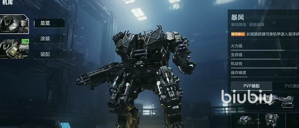 目前提供了两套体系:暴风和巨兽。暴风是大多数玩家最常接触到的一套,强调高机动性和火力压制,适合喜欢快速进攻与消耗的玩家。暴风机甲配备三种武器与两个挂件,其中最具代表性的武器是三管转轮机枪和暴风雪冲锋枪。转轮机枪拥有较高的单发伤害与更好的续航能力,虽然射速稍慢,但凭借高达技能攻击力9%的伤害和较低的子弹消耗,能在中长时间的对抗中持续压制对手。相比之下,暴风雪冲锋枪虽然有着惊人的1800发/分钟的射速,但40发的弹夹容量显得过于局促,即使满命中率也只能击杀少数敌人。实际体验中,转轮机枪的稳定性和持久性明显优于暴风雪冲锋枪,因此更适合大部分场景。