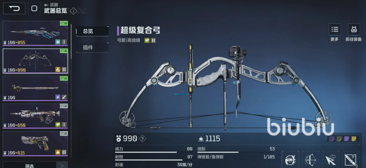 这是一把物理性质的弓箭。主动技“狂热射击”,进入狂热射击状态,期间使用武器射击会自动装填1发后备弹药,且射速提高。被动1“蓄势待发”,可进行蓄力攻击,满蓄力下可提升150%命中伤害和飞行速度。被动2“复合战术”,这个弓箭可以切换多种箭头使用,比如贯穿箭,火焰箭,爆炸箭,冰霜箭,腐蚀箭,每种箭头具有不同的战斗效果,且切换无需能量激活。