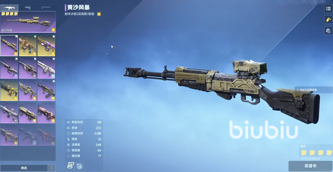 在实际对战过程中,要充分利用黄沙风暴技能的特点,在弹夹最后一发子弹的时候能直接射出5枚子弹,这个技能能帮助玩家收割下战场上还有一点点残血的目标。如果想要进入pvp对战模式的话,还能在词条上帮助玩家增加上角色的血量和攻击能力,能帮助玩家有更出色的射击表现。