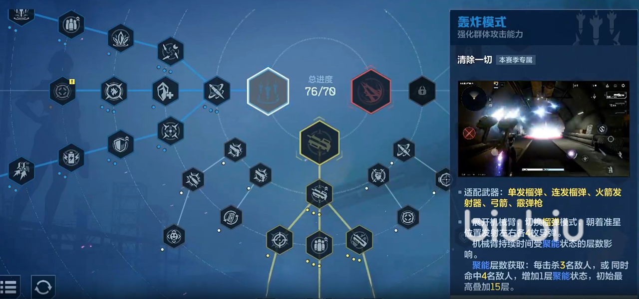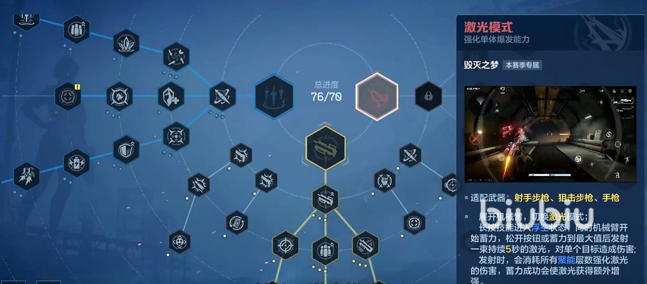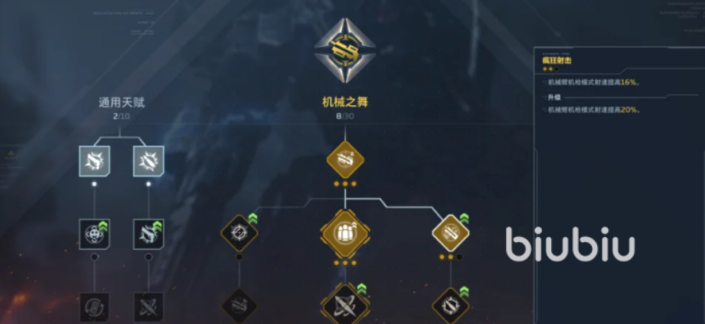 新赛季天赋系统创建起严密的机械臂框架,主要分成赛季天赋和基础天赋两个部分。赛季天赋下细分的激光模式、重机枪模式和轰炸模式三条分支,不但是技能名称的不同,更是武器类型的深度绑定。选择哪条分支完全取决于玩家手中主力武器的种类,不能盲目点满造成资源分散。