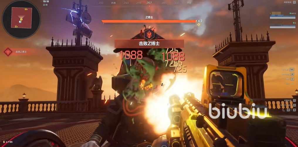第二个boss是Z博士,这是这个副本终章会遇到的敌人,该关卡最后一关就能与它碰面了。该boss会出现在1个开放的平台上,玩家此时也是被固定在这个平台上的,在这个圆形平台之上,它会给自己注射病毒,之后就会变更形态,进入巨人形态,该形态下boss具有三种不同攻击方式,第一种会来回进行冲撞,在这个平台上进行连续冲刺,在这个过程中不能被撞到,被撞击一下对于生命值是较大的威胁。