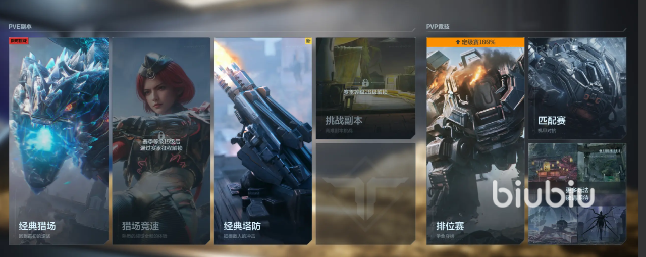 第5种挑战副本同样属于4人组队pve玩法,大家需要进入地图中根据指引朝向着前方推进,观看剧情完成全部任务后胜利,最后是机甲战,16名玩家共同进行有匹配、排位两种,其中随机4人会分成机甲,去和12名人类战斗,在规定时间内人类打败机甲就人类方胜利,反之就是机甲胜利。