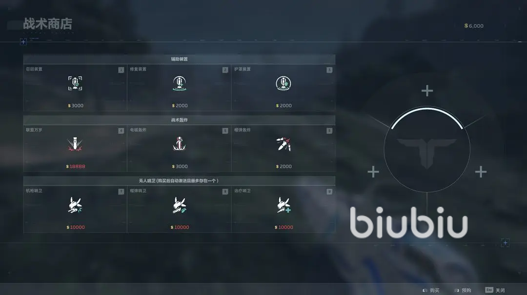 将场上敌人击败,打开宝箱,都能获取金币,可随时打开商城,在这里消耗金币购买战术支援,装备上限是3种,每种最多也就购买3次。这个模式有2个不同地图可参与。