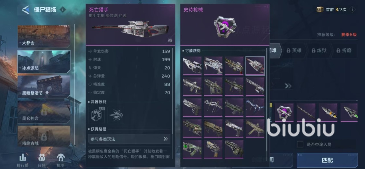 首先来看两款普通版本的枪械,死神猎手是属于传说级的武器,它可以通过使用传说枪械币兑换蓝图的方式打造获得,也可以在战斗中获取到钛金密藏,开启之后有几率得到。死亡猎手是属于紫色的传说品质,可以通过参加各种玩法掉落碎片然后合成得到,也有机会在开启钛金秘藏的时候获得。对于大多数玩家来说,获取死亡猎手的几率要更高一些,这也是很多玩家现在都在使用的武器。至于另外两款皮肤枪械,可以通过解锁钢铁起源通行证的方式得到。