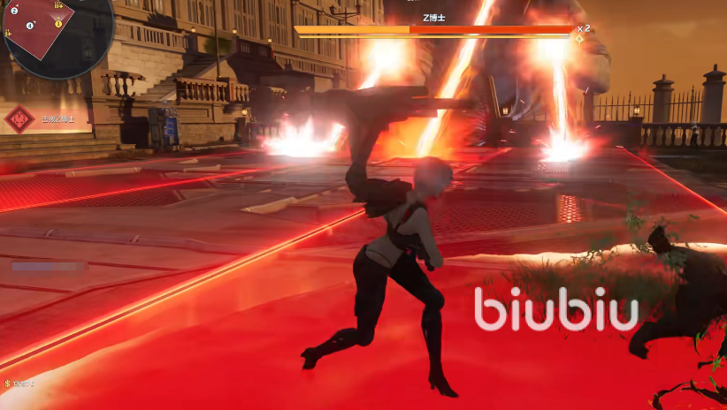 而且Z博士还会向空中喷射黏稠毒液,落地后形成持续性腐蚀区域,更是会出现红色的预警圈,玩家踩入就会持续掉血,所以我们要在红圈生成前完成位移,优先选择环形走位保持安全距离,其激光扫射也是非常头疼的,能直接召唤数道旋转激光束沿平台外围匀速扫荡,对于我们来说,躲避关键在于预判激光转动节拍然后进行穿行,否则会被击中导致角色暴毙的。