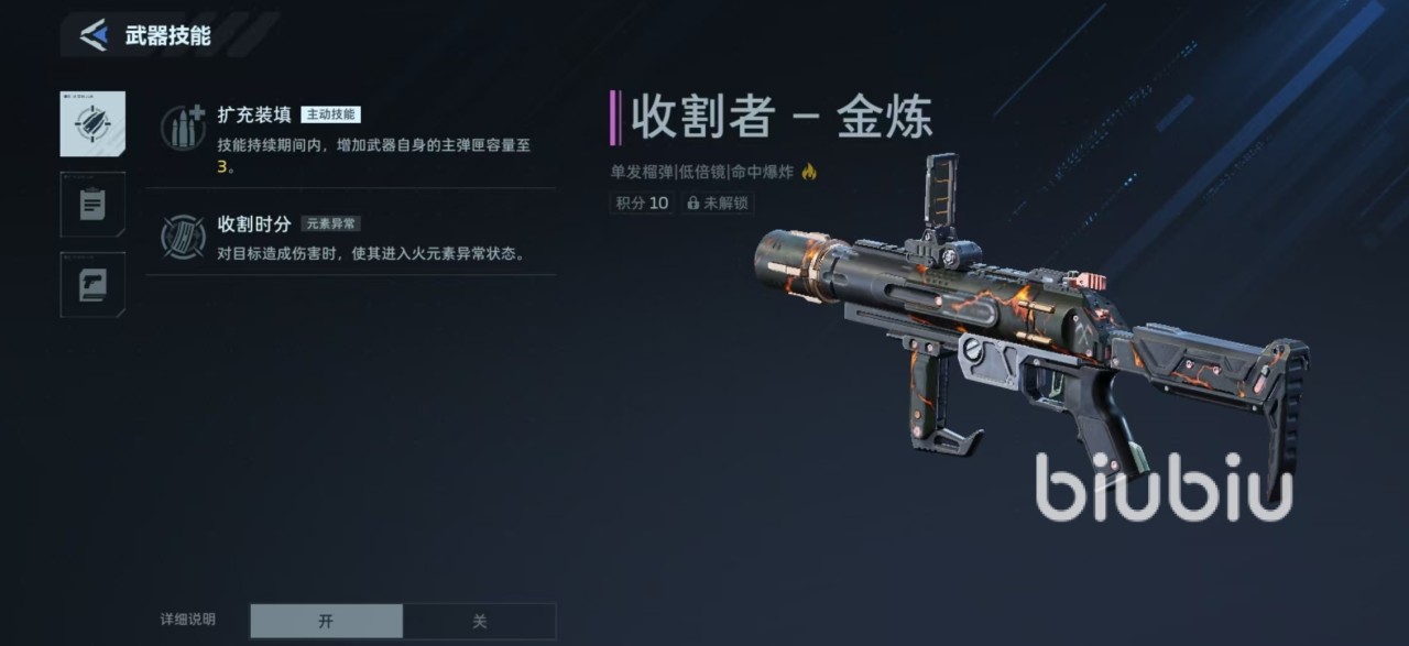 下载这款游戏直接去九游,九游是手游福利最好的平台,1元就能成为九游的白银会员,每月领取50元游戏代金券,一年就直接送600元。还可以在这里开省钱卡,每月自动发放60元,全年有720元无门槛代金券,帮助大家在游戏中直接成为强者。先来看一下收割者的主要属性,作为单发榴弹,单发伤害为433,射速27,弹夹1发,总弹量10发,爆炸半径2.5m。