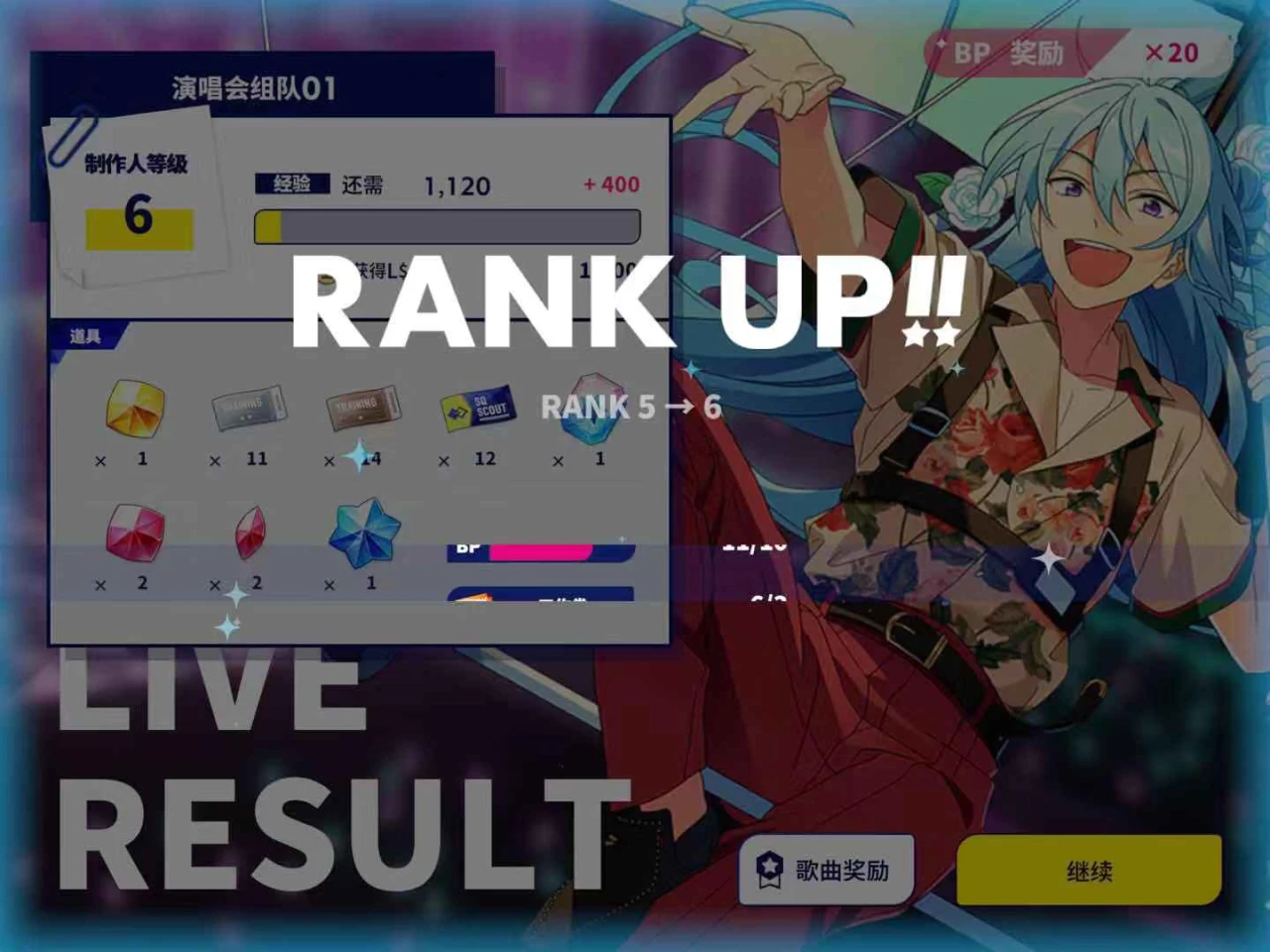 可以的话充值一下应援月卡,就可以无限使用翻倍卡,这样完成歌之后就可以一直用翻倍卡进行获得奖励。