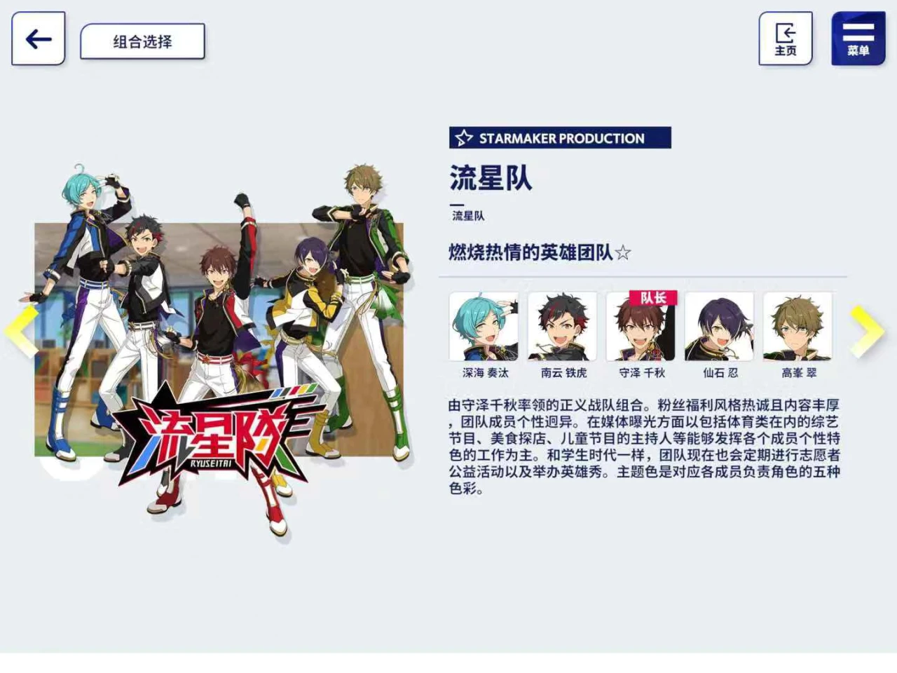 成员有礼濑真宵、白鸟蓝良、天城一彩(队长)、风早巽。这个是小编最喜欢的一个团队,代表作人工呼吸,音乐听一遍就能让人记住他们,尖端前卫音乐组合,音乐非常具有攻击性,酷帅的舞台风格加上天成一彩的表演,可以说在舞台演出上面没有哪个团队可以达到这种音画兼备的效果,节奏和旋律上来就能牢牢的抓住每一位粉丝的新,主体色为绿色。