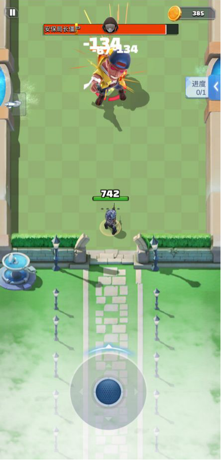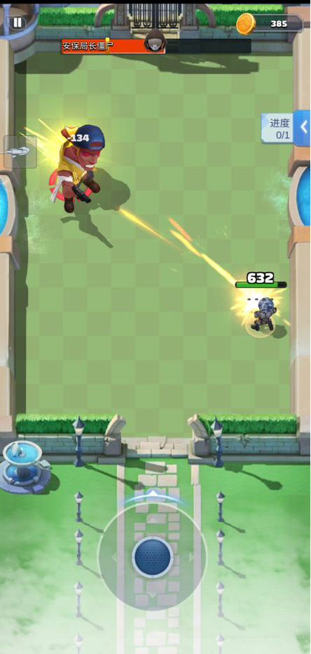 首领的血条我们可以在上方很明显的看到,到达这里我们就没法再升级选择技能了,所以走位和站位至关重要,由于游戏设定我们必须站立后才会设计,所以刚开始进入射程先行打一发输出,然后我们要躲避首领的攻击,这个时候切记不要再贪刀了。