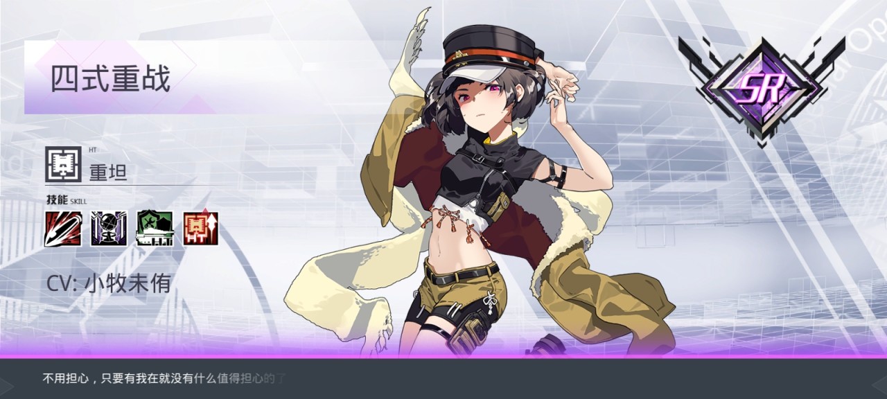 SR品质的重坦小编最为喜欢的叫四式重战,这是一个能够放在队伍前排的游戏角色,能够替其他的玩家承担大量的伤害,角色强度非常的不错,而且还有一定的攻击力,培养起来的话会非常好用。