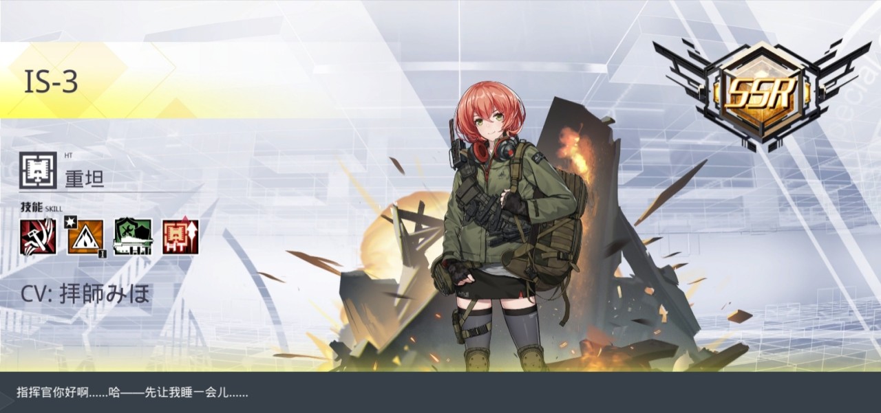 首先是重坦一般都摆放在游戏的前排用来抵挡伤害,并且进行输出,本身的强度要求是比较高的,所以对于SSR品质的重坦小编特别推荐虎式和IS-3,这两个技能输出伤害高,而且本身的强度也比较枪能够抵挡大量的伤害,在重坦这个分类中属于比较优质的角色。