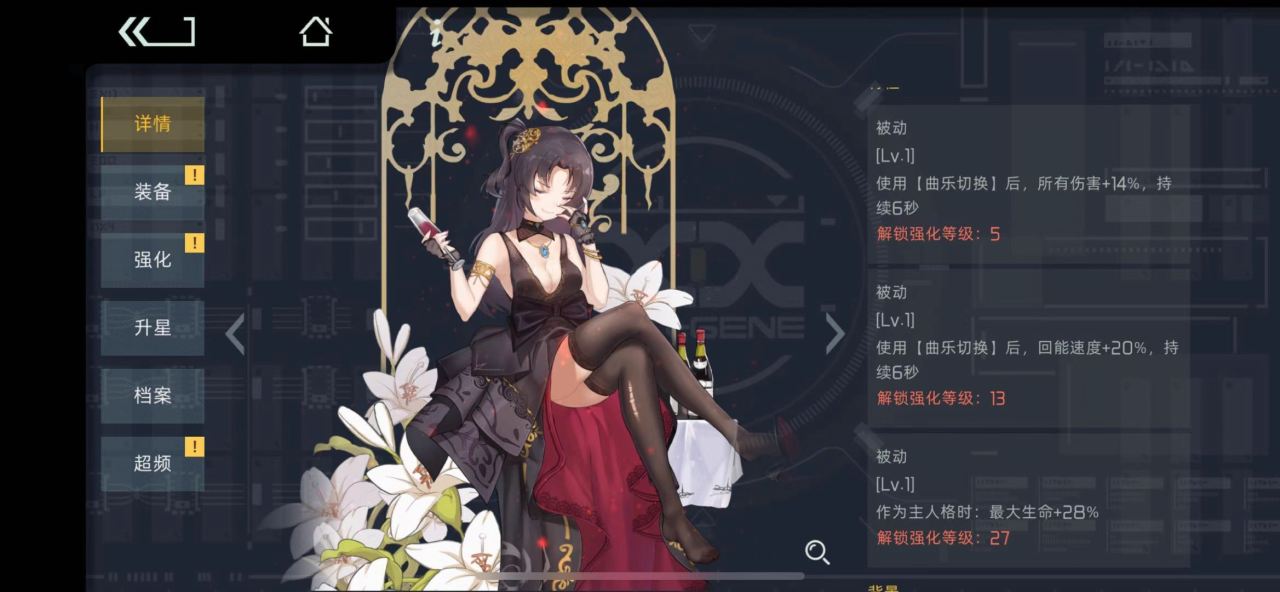 2.被动技能有三个,是曲乐切换之后增加所有伤害和回能速度,最有用的被动自然是增加百分比的生命值,提升了狂想曲的生存率。(主人格模式下)