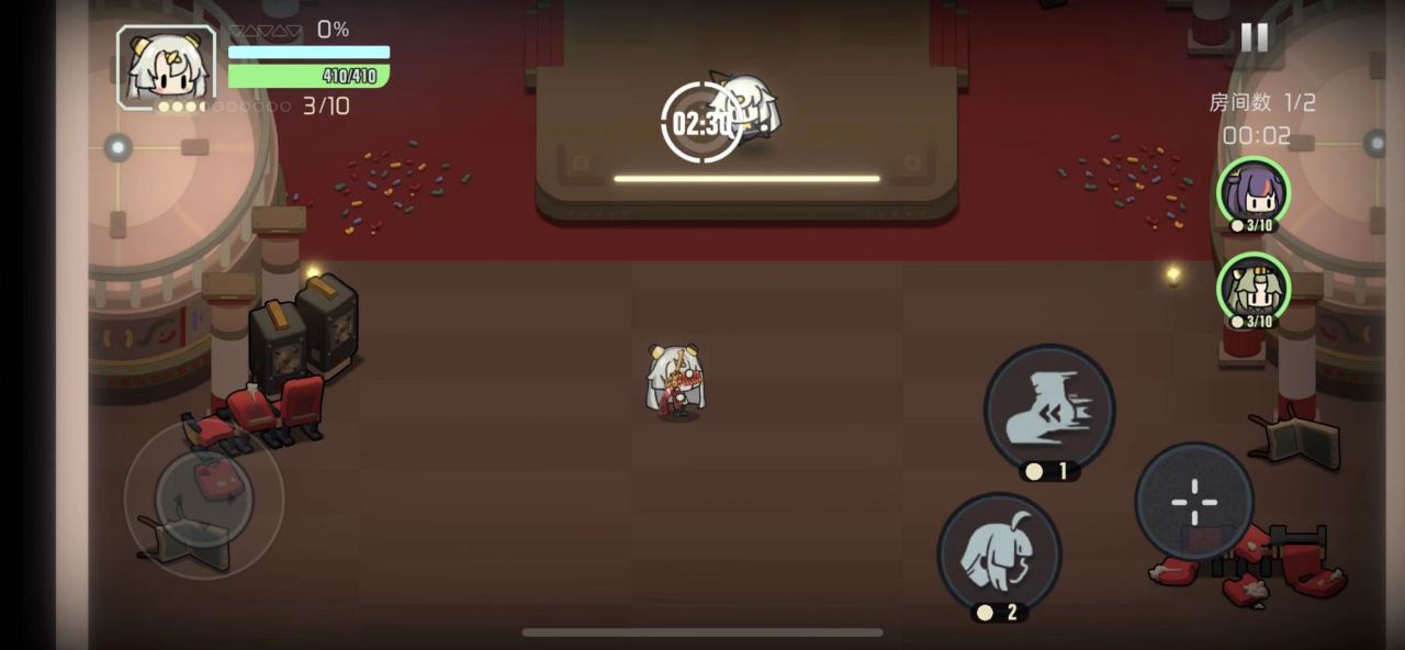 1.了解了技能之后就大概明白怎么玩了,第一点是攻击的时候多使用闪避和走位,保证自己不被对方把护盾打破,第二点是不要在意血量,频繁的使用人格技能来触发全域攻击快速推图。