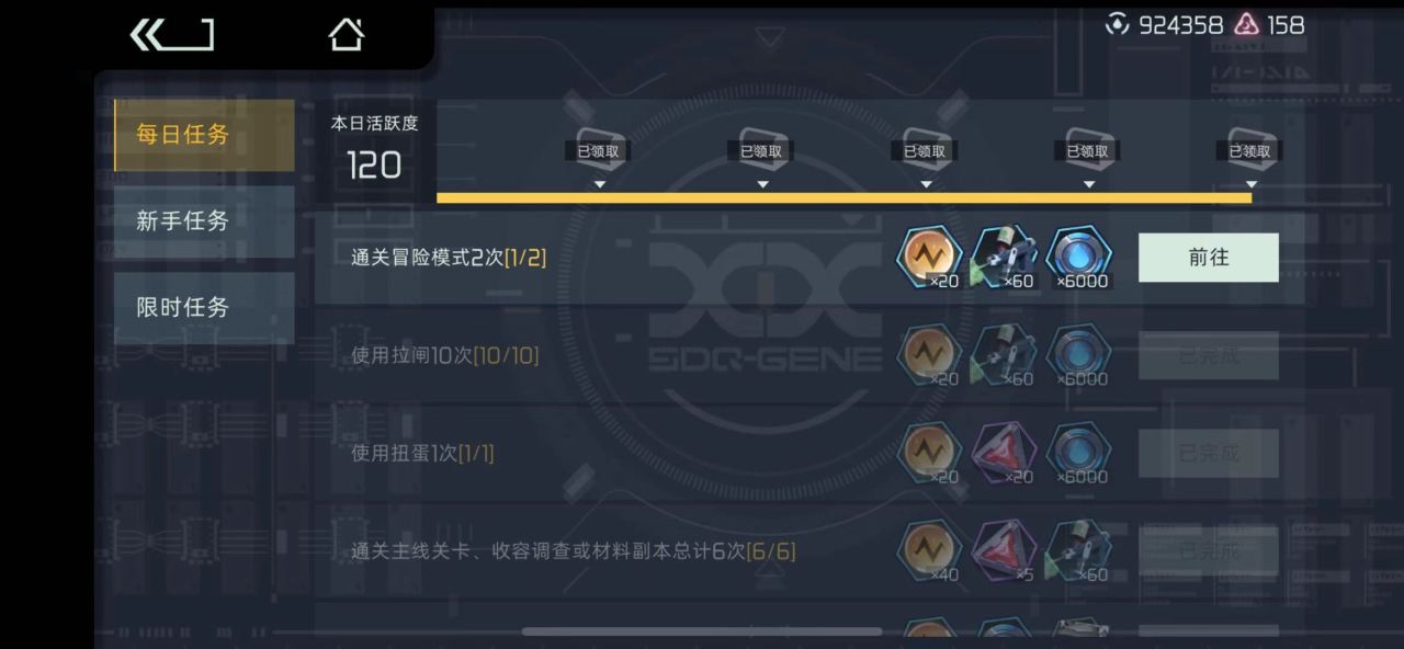 如果还想继续去抽的话就把每天的任务做完,再去材料副本刷首通奖励,接着疯狂打主线,前期混个100抽不是问题。