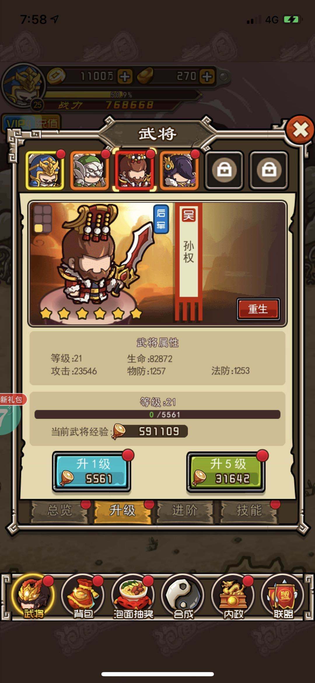 最基本的提升张角实力的方式就是给张角进行升级,游戏里每一个英雄都是有自己的属性成长度的,属性会随着等级的提升而提升,而张角作为红色武将,还是一名神将,自身属性的成长度更高,所以提升一级各种属性增加的更多,相应的属性也就更多,所以想要提升张角的实力,第一步也是最基本的方法就是给张角进行升级,升级的方式很多。