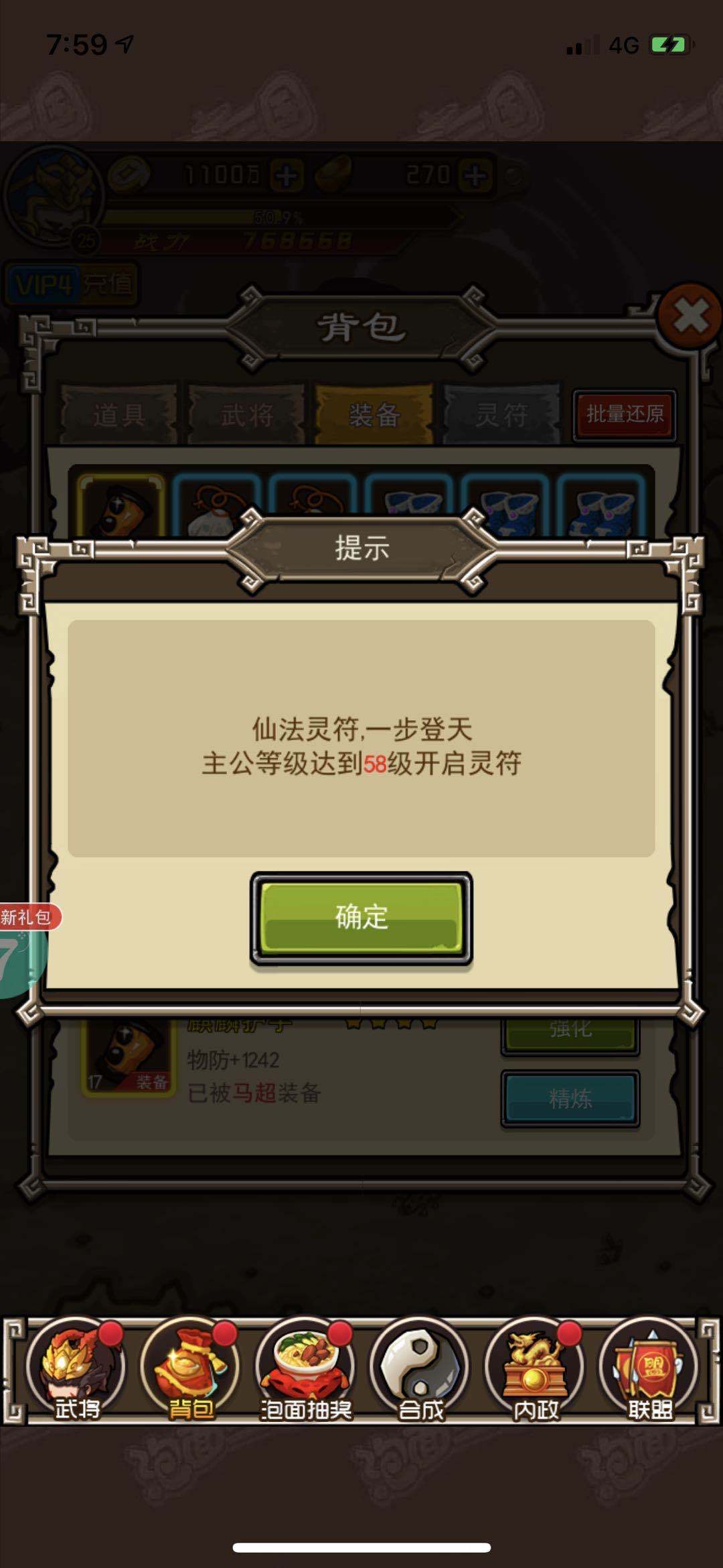 在张角等级提升到五十八级的时候,就有资格能穿戴上灵符,灵符是针对某一种属性对英雄进行提升的道具,给英雄搭配上高品质的灵符能让英雄的某一个属性得到突飞猛进的变化。高品质的灵符可以在灵符争夺战里获取到,然后给张角装配上就可以了。