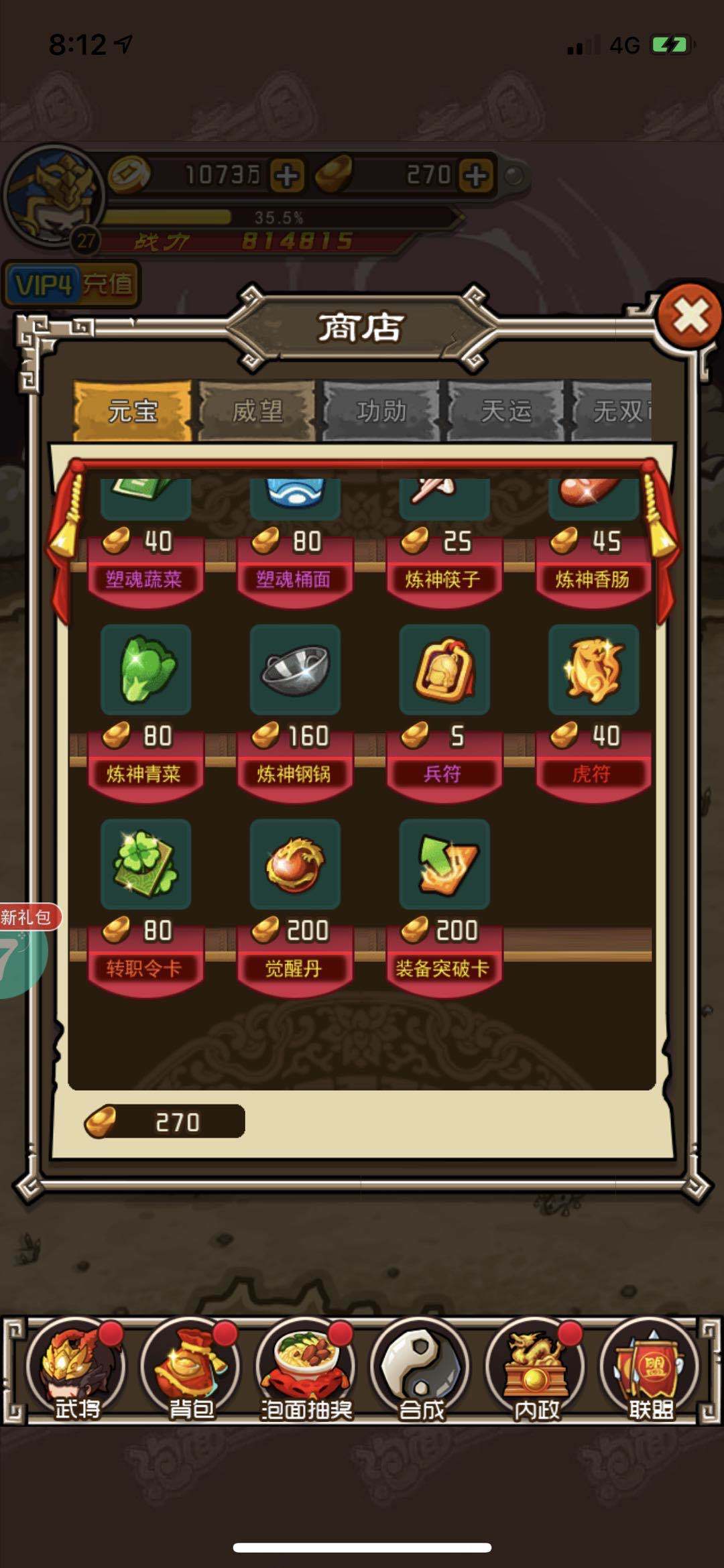 除了武将以外,大家还需要使用进阶丹才能给武将进阶,进阶丹一般需要上千个才能完成一个武将所有的进阶流程。进阶丹可以在副本里面刷新获取,也可以在限时商店里使用元宝购买获取,还可以通过做各种任务累计获取,然后点击进阶系统就能完成进阶了。