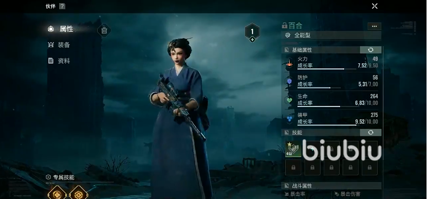 另一个专属的被动技“大器晚成”,可提高12%自身火力,生命和装甲也均得到12%的提升,副手转化率同上,但是获得的所有经验值会下降50%。从技能效果不难看出,该伙伴能给敌人附加各种不同的幅面buff,让对手始终处于不正常的状态当中,这会大大影响敌方的攻击效率以及节奏,能打乱对手的策略,更好的对目标造成限制效果。