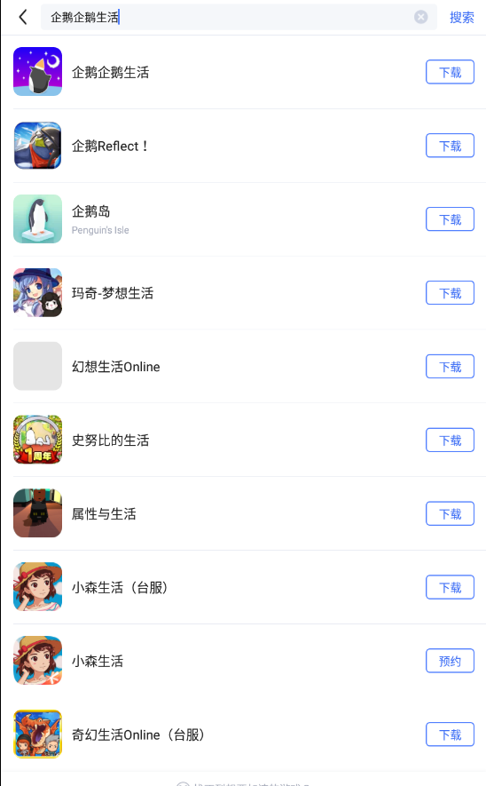 在Biubiu加速器右上角点击“搜索”,输入“企鹅企鹅生活”,确认无误后点击游戏右侧的“下载”即可立即下载游戏。