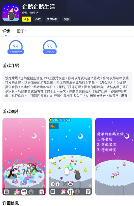 企鹅企鹅生活是一款休闲养成游戏,玩家可以在游戏中收集憨态可掬的小企鹅,和企鹅一同玩耍。观察小企鹅每天在岛上的呆萌行为,也是都市年轻人治愈自己的一种方式。清新精致的画风也一定能让玩家收获一番温馨的体验。
