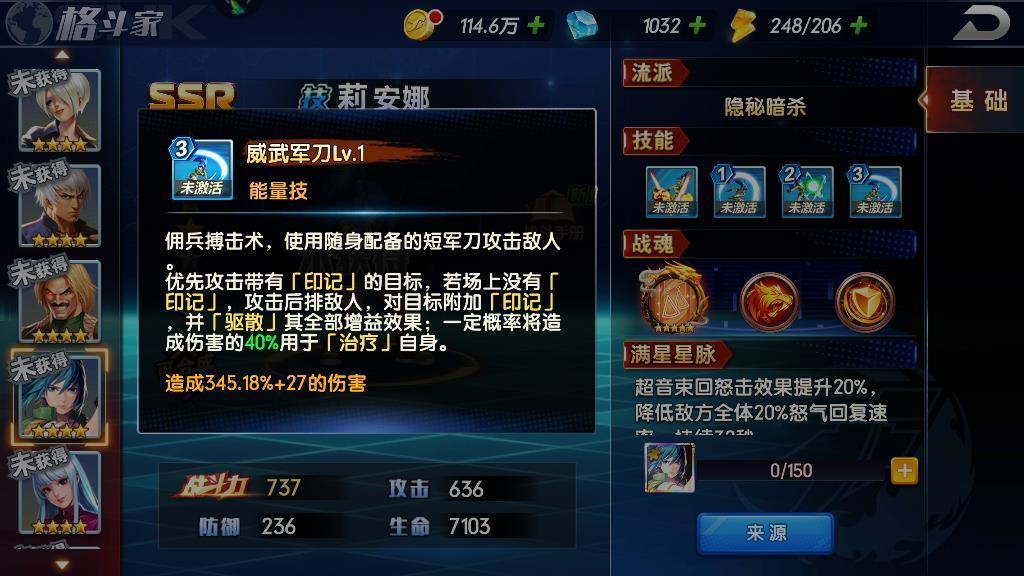 首先是关键角色的介绍,本次挑战需要玩家上阵草薙京和莉安娜这两个角色。游戏里面草薙京是一个新手角色,获得是没有任何难度的。但是莉安娜这个角色是SSR级别的,想要获得需要玩家准备大量的抽卡才行。