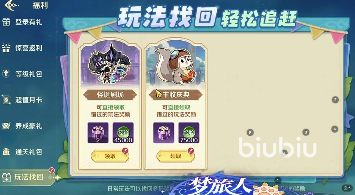 奇幻梦旅人日常任务有哪些上面这些是主要的游戏内容,如果各位实在是比较困难获取,可以利用玩法找回的方式找回错过的奖励,这些奖励对于部分玩家来说是非常重要的获取手段,如果各位玩家想要获取这个奖励就要使用这个方法,相信会让各位的奖励内容追回非常多的数量。