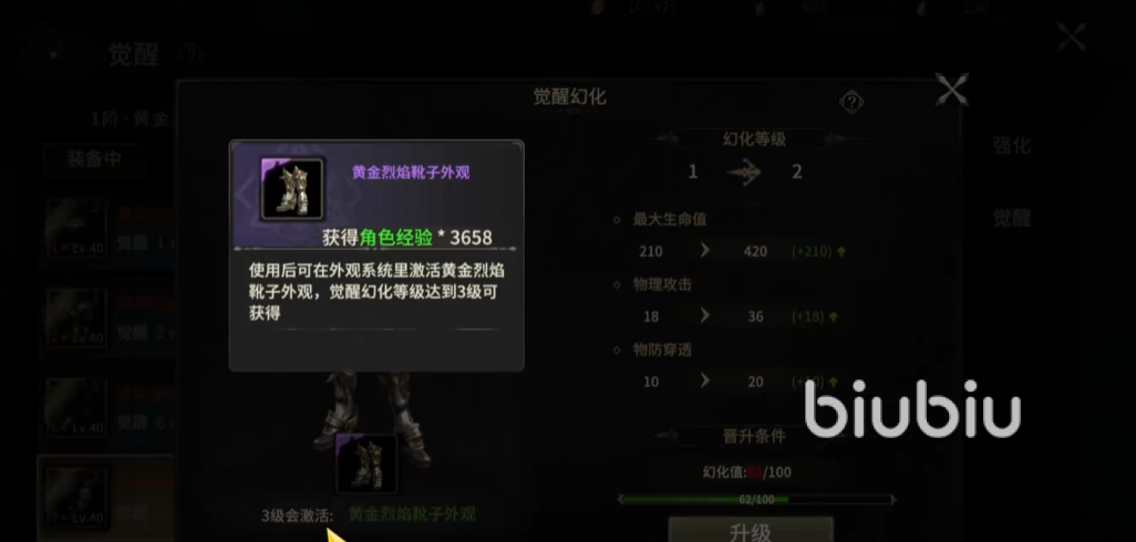 每次成功让黄金装备觉醒,都能产生一定的觉醒幻化值,这是获得幻化值最为直接的途径,在觉醒次数不断增加之下,幻化只也会逐步进行积累,觉醒是有一定概率的,并不是每次都能保证成功,可通过提高幸运值来提升觉醒成功率,且不同部位黄金装备觉醒产生的幻化值也是不同的,武器产生的幻化值就比较多。