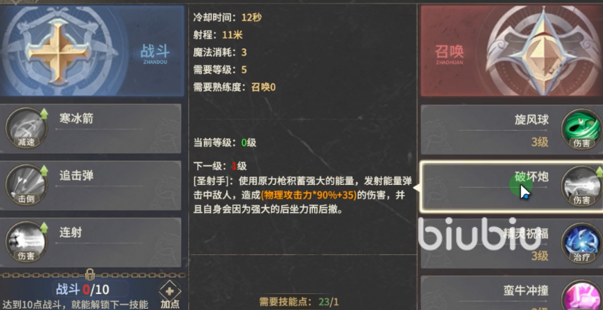 最后再学习一招精准射击就好,可以造成高额单体爆发伤害,5%概率弱点暴击,进一步提升你的输出能力。至于技能释放的顺序的话,更加推荐苍狼召唤(团队增益)→ 元素领主(AOE清怪)→ 自然共鸣(团队回血)。