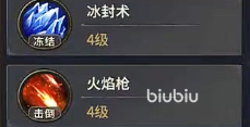 之后需要携带的火焰枪和冰峰术这两个技能,这两个技能是需要点到满级也就是四级的,这是它的核心控制技能,拥有击倒和冻结的效果战斗中非常的好用,在之后需要带压力水墙这个技能。