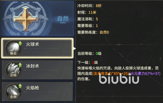 该流派首先是火球术,这个在使用时会在吟唱后,向着敌人投出火球造成一定范围伤害,压力水墙会在自身的周围竖起一道水墙,击退一定范围内敌人并造成输出,天崩地裂会发动强烈的地震对范围内敌人造成伤害,并使得他们降低20%的攻速和移速;