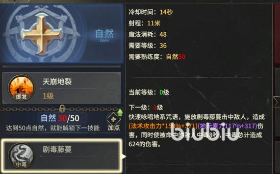 剧毒藤蔓会吟唱地系魔法,释放出剧毒藤蔓来攻击敌人,造成一定输出后,还会让被命中的目标进入到中毒状态8秒,在这个期间总计会造成624的伤害,“冰霜新星”能直接冻结范围内敌人。
