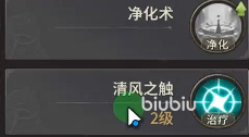 之后需要点的第二个技能是净化术,这是一个带有净化异常状态的技能。第三个需要点的技能是清风之触,这是一个群体治疗技能。最后一个需要点的技能是单体复活,这是一个拉人技能。