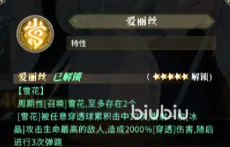 她的雪花会定期召唤雪花,最多存在2个,当其被任意穿透球累积击中12次就会发射冰晶,攻击生命最高的敌人打出2000%穿透伤,并进行三次弹跳适合应对BOSS等单体敌人。