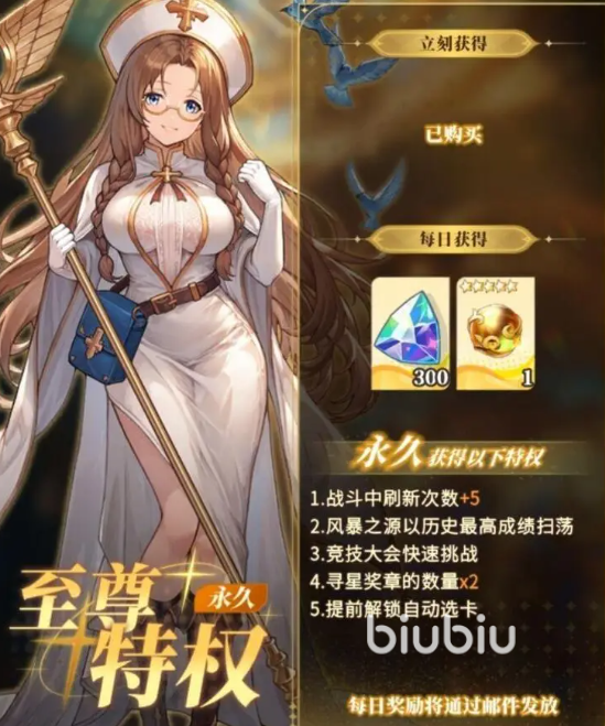 除此之外竞技场、挑战龙王等各种玩法也能帮助获取不少资源,准备氪金的玩家们,月卡是比较值得考虑的选择,而且月卡和高级月卡只需购买一次,即便过期,对应的特权也会永久生效,若氪至尊卡,挑战风暴龙王,每日可直接进行三次扫荡。