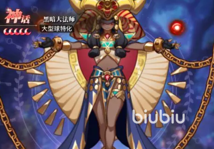 黑暗大法师会在登场时大幅吸引全场敌人,并打出5000%召唤伤,之后会在场地的中坚放出黑暗火盆,在15秒内使得场上所有大型球能无视耐久损耗并且加60%伤害,同时每间隔1秒就会从放出冲击波,从中心击退所有大型球,她的被动能通过球体积的变大来提升伤害。