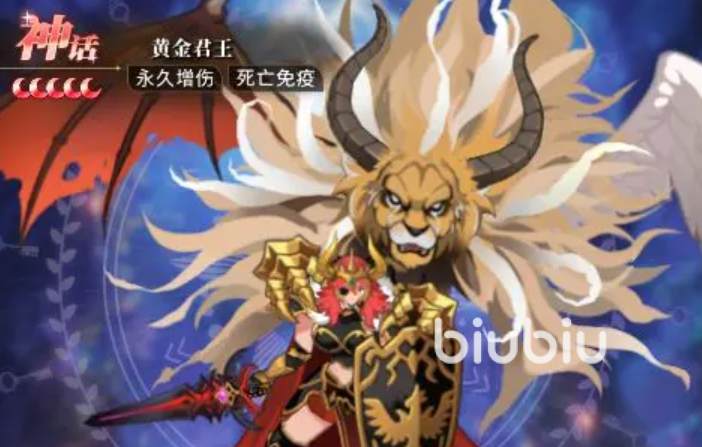 黄金君王会打出召唤伤,并使得所有队友获得狮心效果,狮心会提高持有者30%造成伤害,同时在濒临死亡的时候能有6秒对死亡免疫,并立即回复生命,她的天赋可以让所有队友受到的伤害降低。