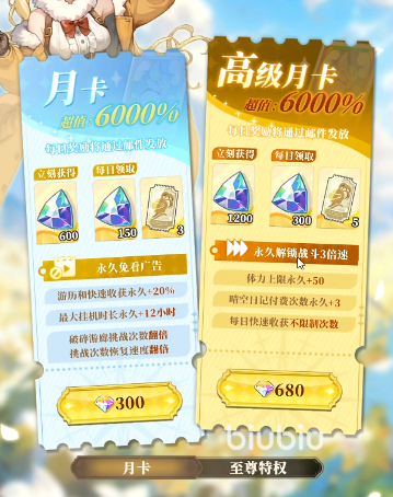 游戏中还有一个比较简便的增加游历收益的方式,就是月卡,而且只要是基础月卡就可以。基础月卡不仅能让玩家免看广告获得各类资源,还有帮助玩家加速游历以及再增加12个小时的游历。