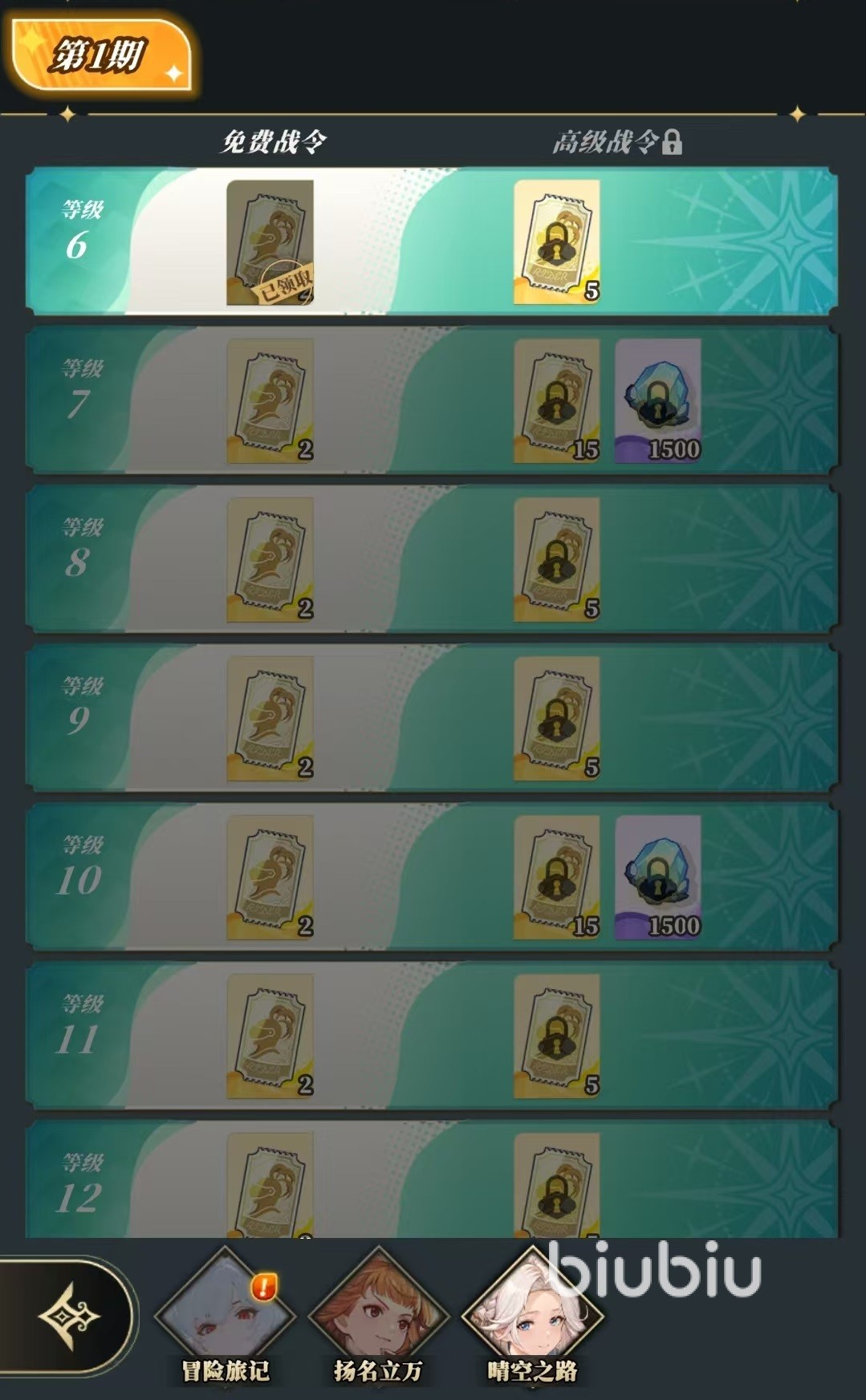 排在第二的就是游戏中的战令,战令分为冒险旅记、扬名立万、晴空之路这三个,需要花费彩钻去开启,开启之后奖励直接大幅度提升。主要包括钻石、抽卡道具等两大类,都是前期最需要的资源。接下来是1元特惠活动,1元特惠活动会连续开放7天,只需要1元就能拿下,虽然单个奖励并不算突出,但是累积下来只需要很少的代价,就可以获得前期养成必须的各种道具资源。再接下来就是游戏中的月卡,分为普通月卡和高级月卡,普通月卡300彩钻,高级月卡680彩钻。建议这两个全部拿下,每天获取的钻石就足够回本。还有一项是至尊特权,这个也很建议打开,开启后战斗中刷新次数提升,还能提前解锁自动选卡。