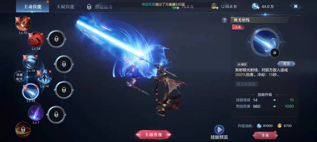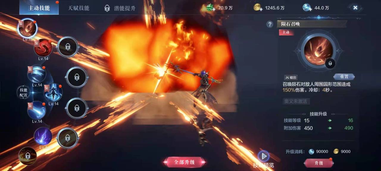 法师的基础技能陨石召唤,风暴气旋,激光射线和爆裂火焰都是非常不错的范围技能,其中陨石召唤可以在指定的位置讲下陨石造成大面积杀伤,是法师的常规输出技能。风暴气旋的效果是对前方范围内的敌人造成伤害,同时还能减速。激光射线是对前方一条路径上的敌人造成伤害,这是法师手中伤害最高的范围技能。
