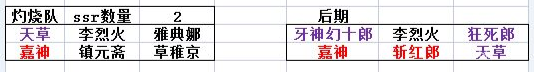 火队的一个搭配思路就是选用火系强力输出角色,比如不知火舞,作为爆伤角色代表,拥有高暴击率和较高的暴伤,这样就会在触发暴击时打出成吨的输出,这个角色的问题就是比较脆,所以队伍里要有一些增加回复和格挡能力的辅助角色。