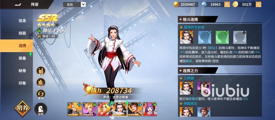 神乐千鹤也是个类似的辅助角色,在抵抗爆发上更强,拥有一次死亡免疫的技能,并且对女性队伍可以额外增加防御能力和异常状态抗性,和前面的雅典娜都可以成为女队的核心。
