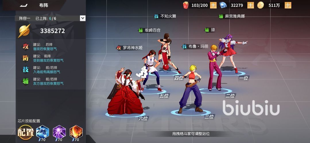 火系当中,虽然不知火舞因为角色本身人气加上属性的原因,而且氪金就送的高保有率,导致很多人都爱用,把练度拉满通过暴击打伤害也很强,但在火系角色中不知火舞有个问题就是比较脆,需要搭配好用的辅助来提高生存能力,否则还是挺容易暴毙的。