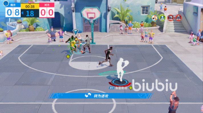此时2米内的对手,在1.5秒内会更容易吃帽,不过要注意这招的代价是若冲抢成功,下个进攻回合自身投篮命中率会降低,也就是牺牲暂时火力为队伍博取关键球权,在进攻回合他的进攻大旗,能让队友在不同区域投篮能激活相应增益,中距离提升中投命中率,外线更容易中3分,并且每次激活还能将突破和终结技重置成0秒,让他能随时爆发下一波攻势。