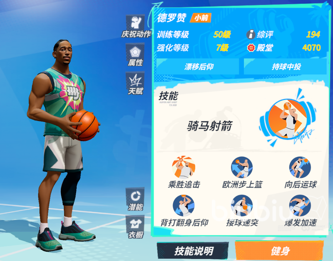 在三个选项中还有一个是德罗赞,定位是小前位置,如果你们喜欢在内线灵活的打突破,对那些花哨的技能和中距离投篮比较感兴趣,那就可以尝试体验次角色,同时在使用这类球员的时候,你们还要学会不断地通过跑位来配合队友作战。